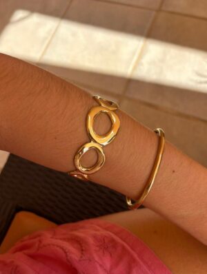 El brazalete Olaya combina eslabones ovalados en acabado dorado con un diseño contemporáneo y chic.